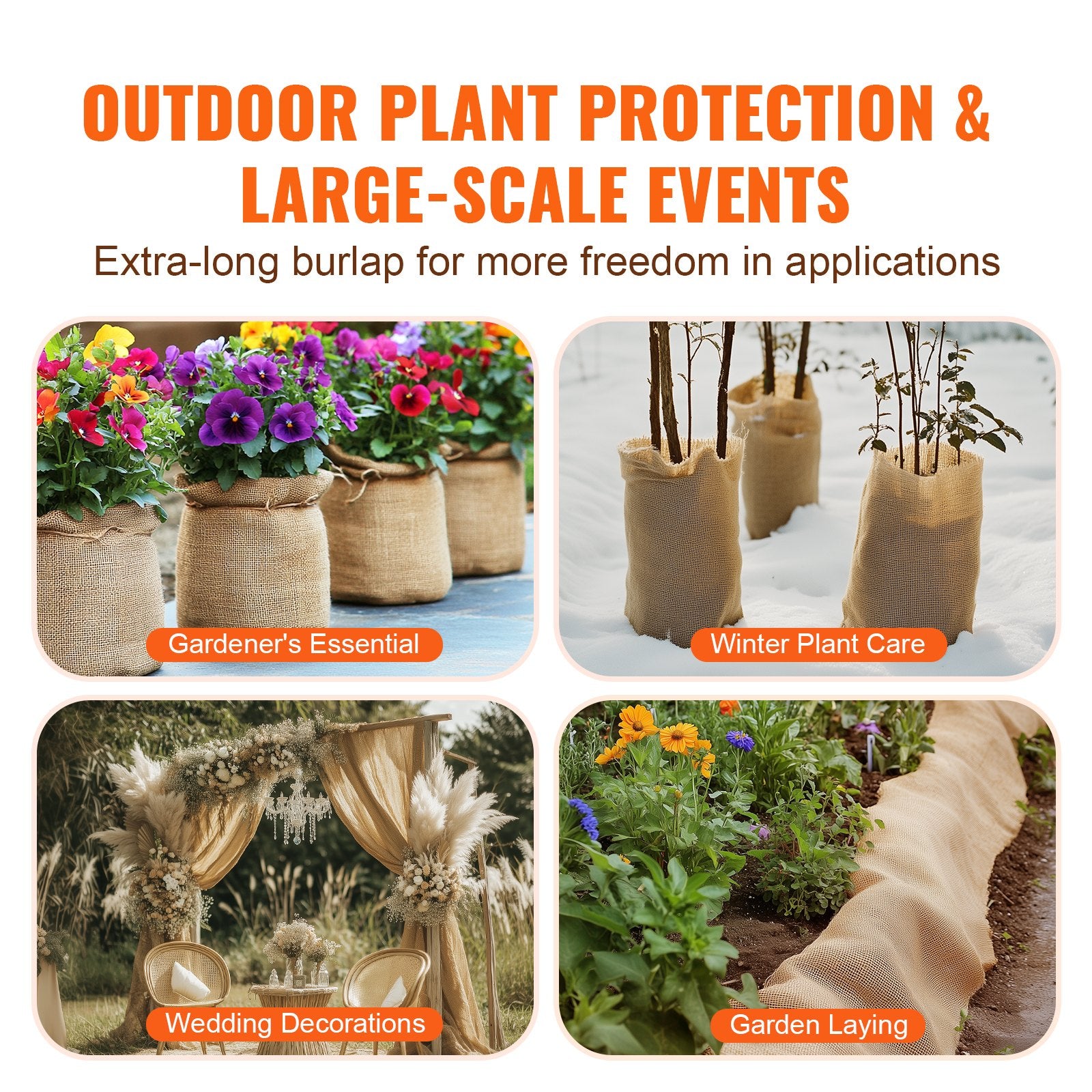 Natural burlap fabric roll measuring 1016 mm by 45.7 m, suitable for crafts, gardening, and decorative applications.
