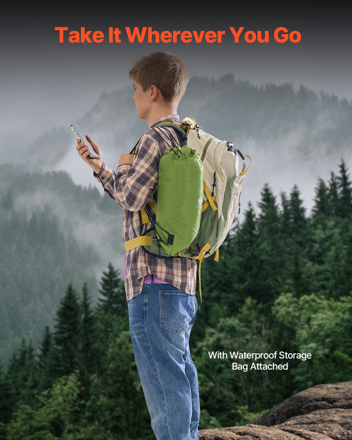 Warm and durable camping blanket measuring 2.08 m x 1.4 m, featuring waterproof fabric and thick fleece for outdoor use.
