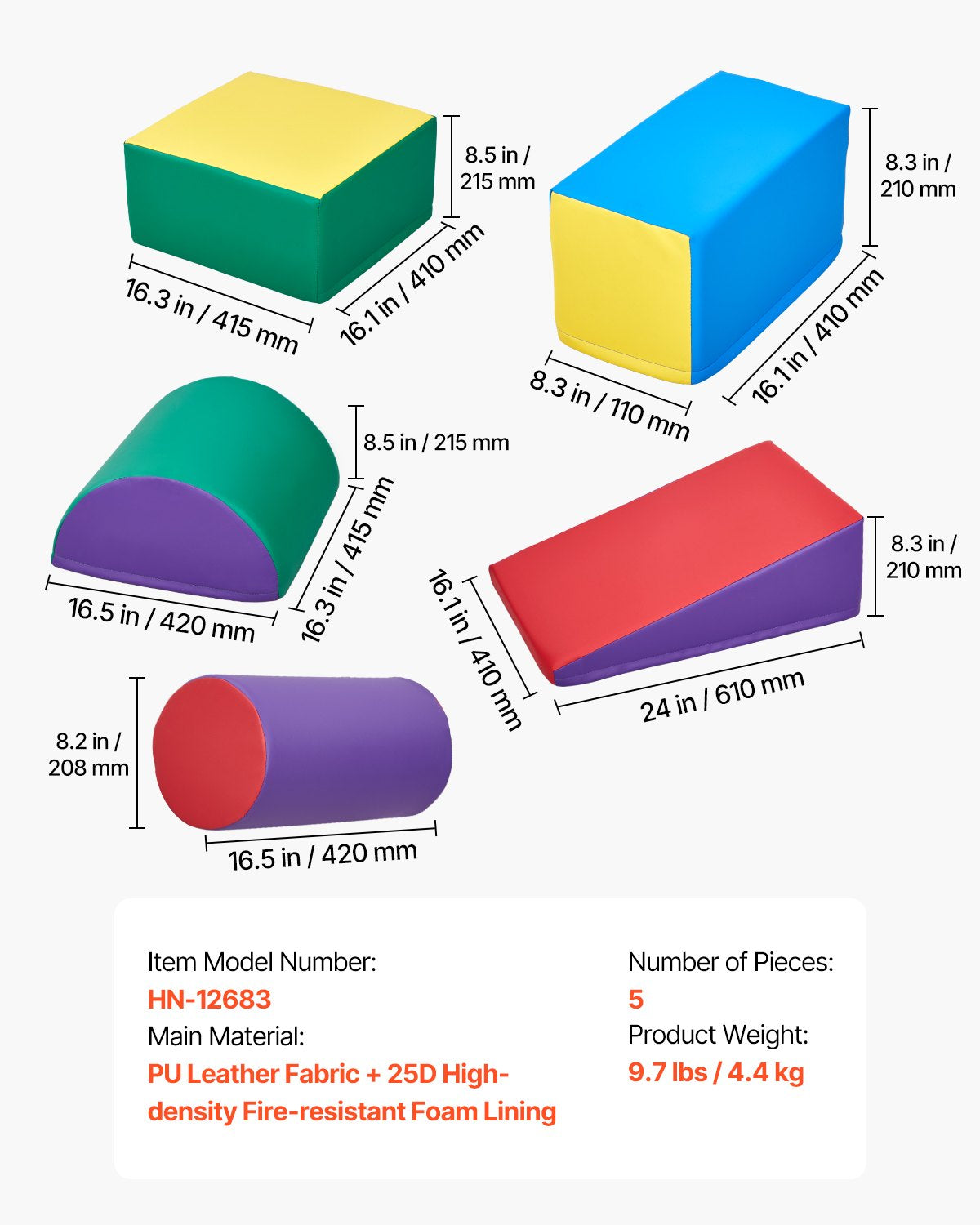Five-piece foam climbing blocks designed for toddlers and preschoolers to develop motor skills and coordination safely.