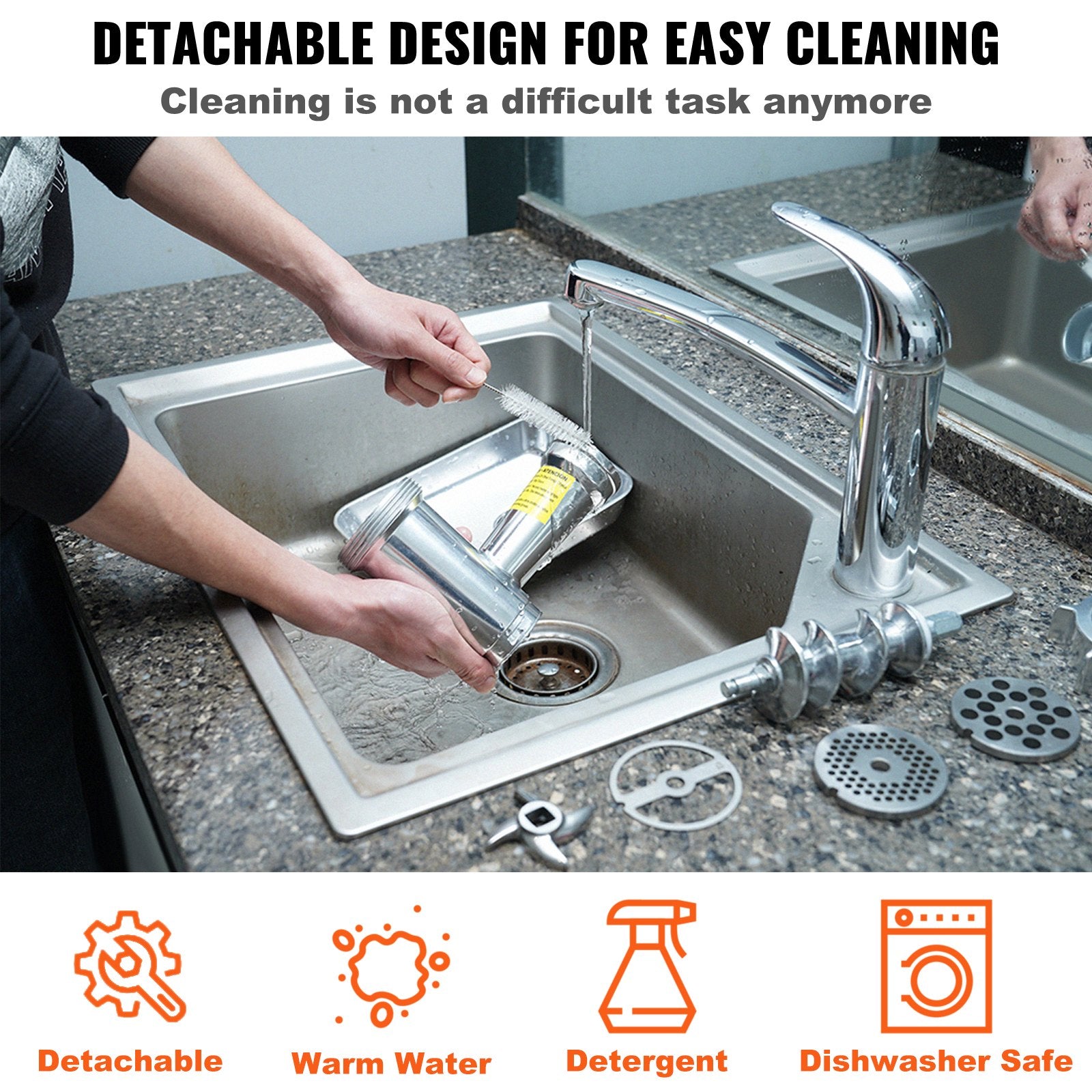 Electric meat grinder with a 2.27 kg/min capacity, suitable for continuous use and includes sausage stuffing accessories.