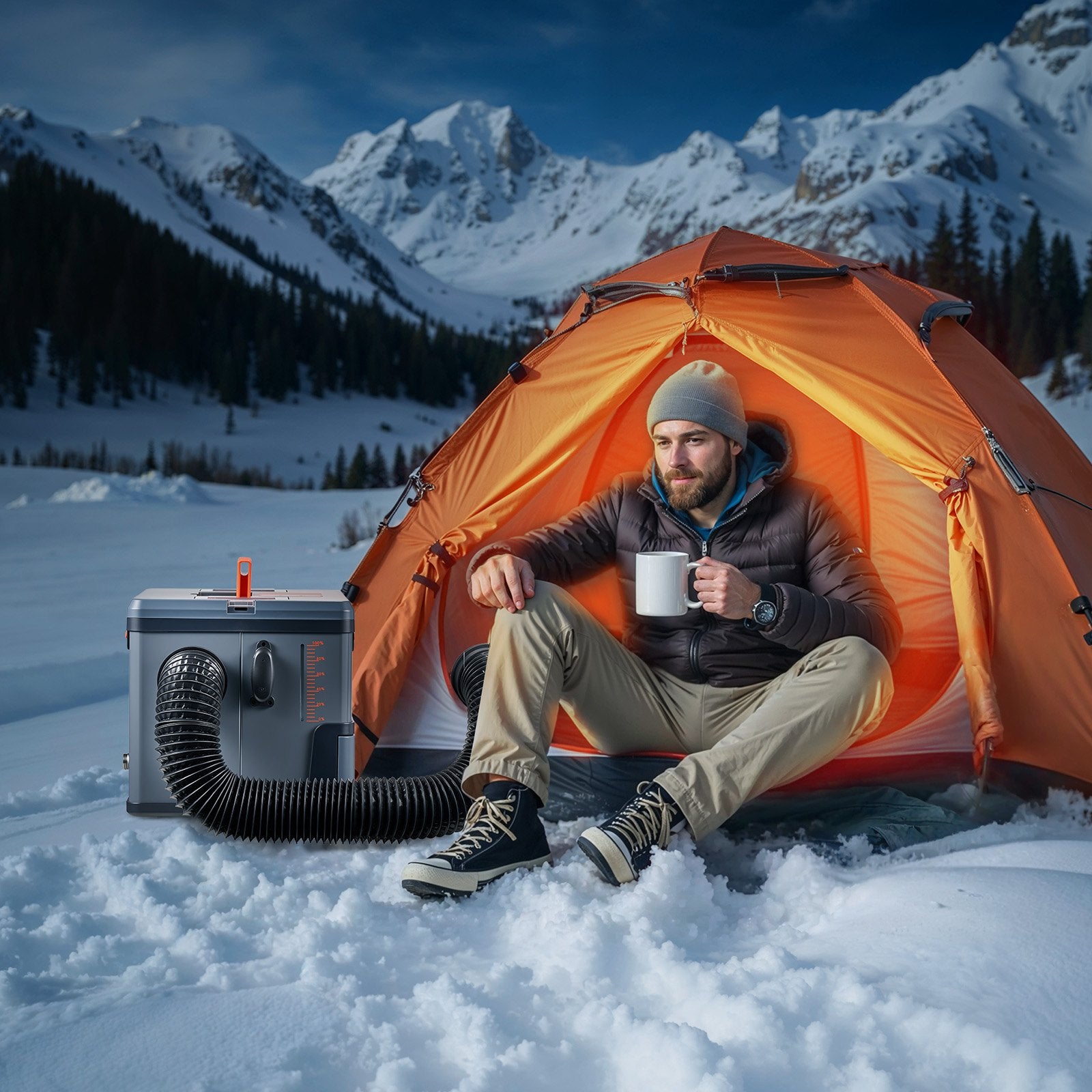 8KW portable diesel air heater with Bluetooth app control, remote, and LCD screen. Suitable for trucks, vans, RVs, and garages with a 5L fuel tank.