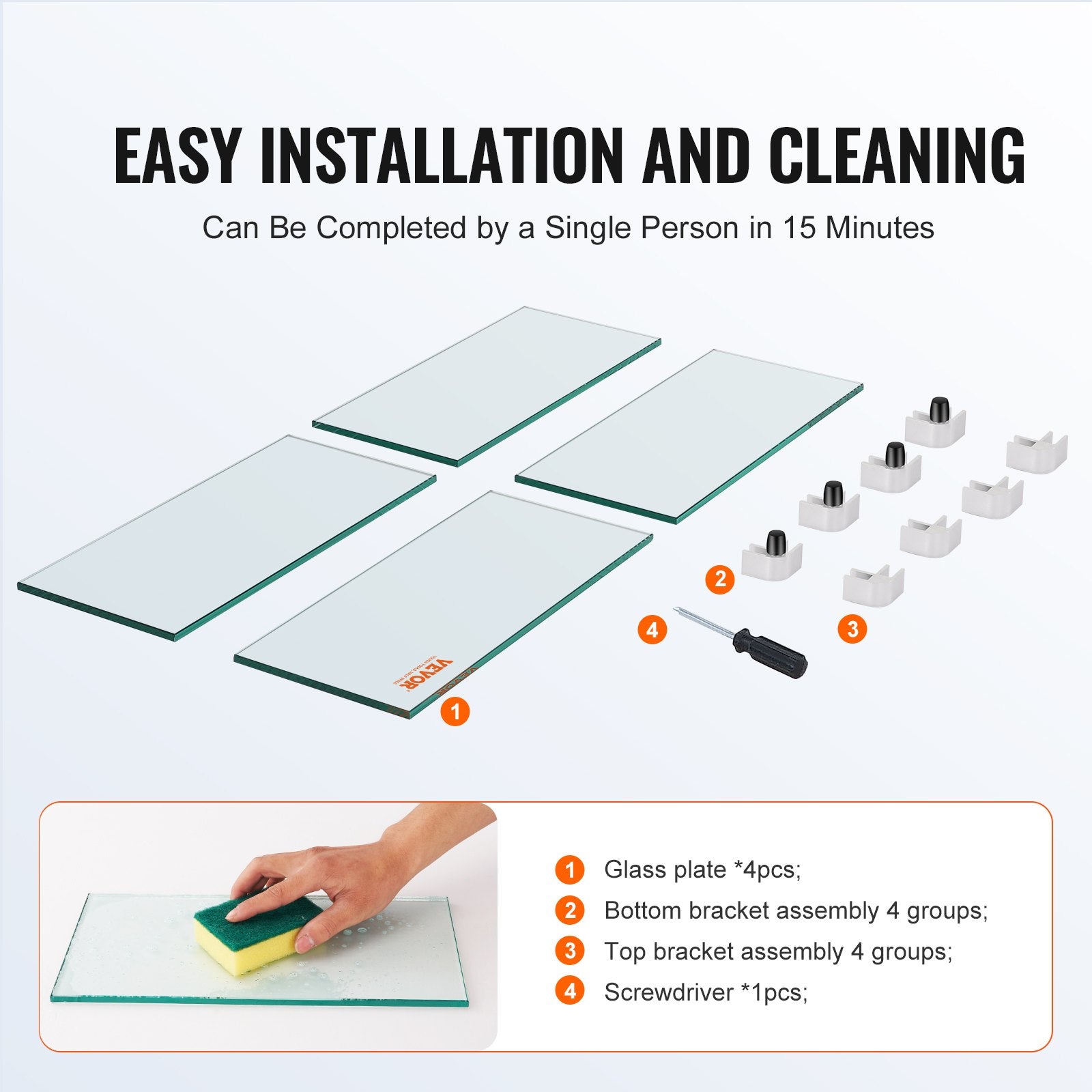 • Material: Tempered glass panels and aluminum alloy connectors
