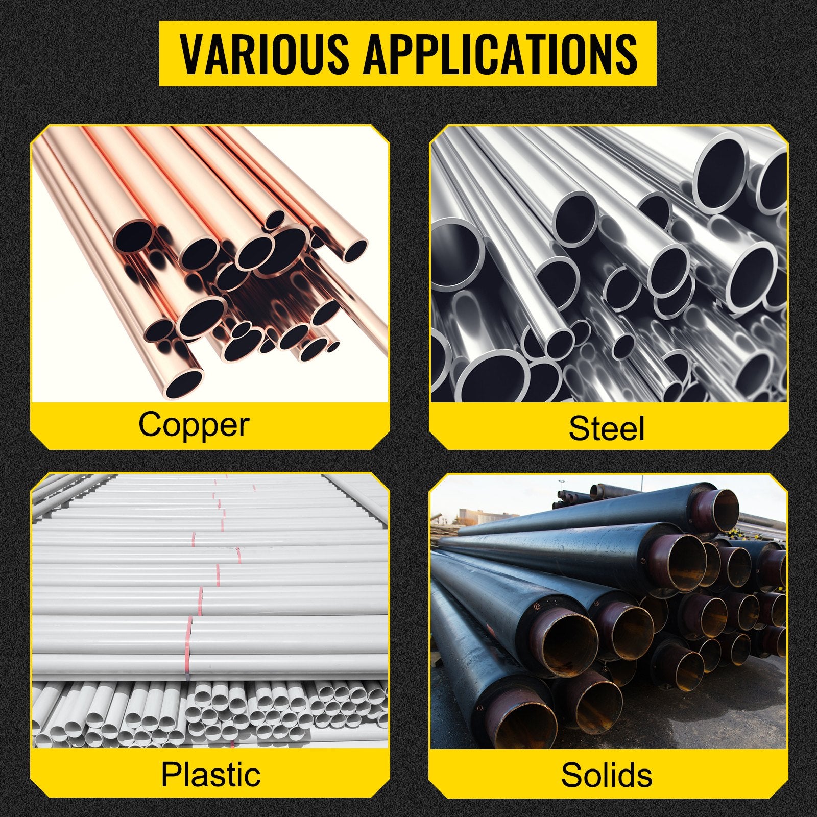 Adjustable pipe stand with V-head supports pipes 1/8 to 12 inches, height 28-52 inches, folding design with casters for portability and stability.