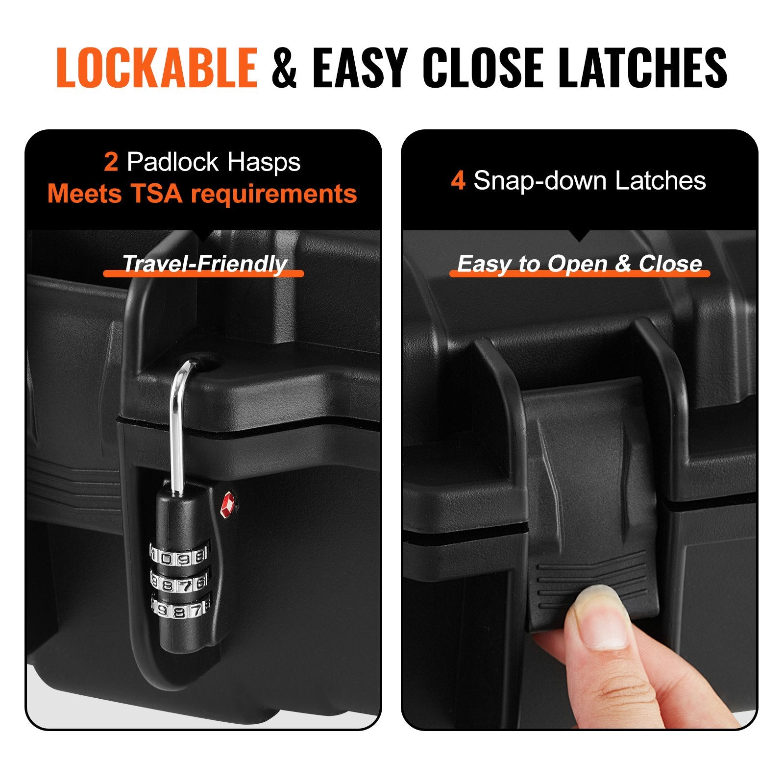 Durable 42-inch hard rifle case with 3-layer foam protection, lockable latches, wheels, and IP67 waterproof rating for secure firearm transport.