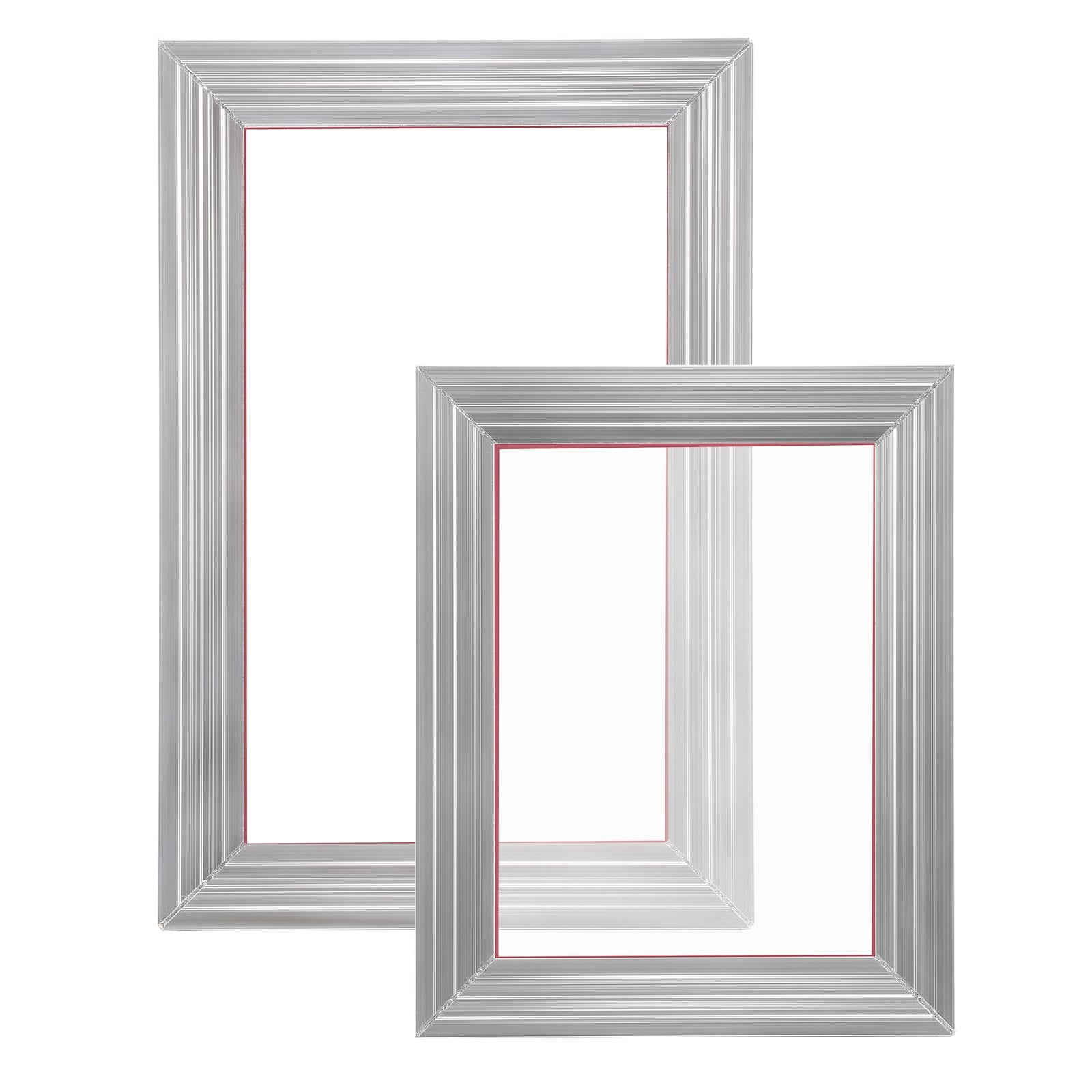 Complete screen printing kit with aluminum frames, 110 mesh screens, squeegees, tapes, and transparency films for versatile DIY projects.