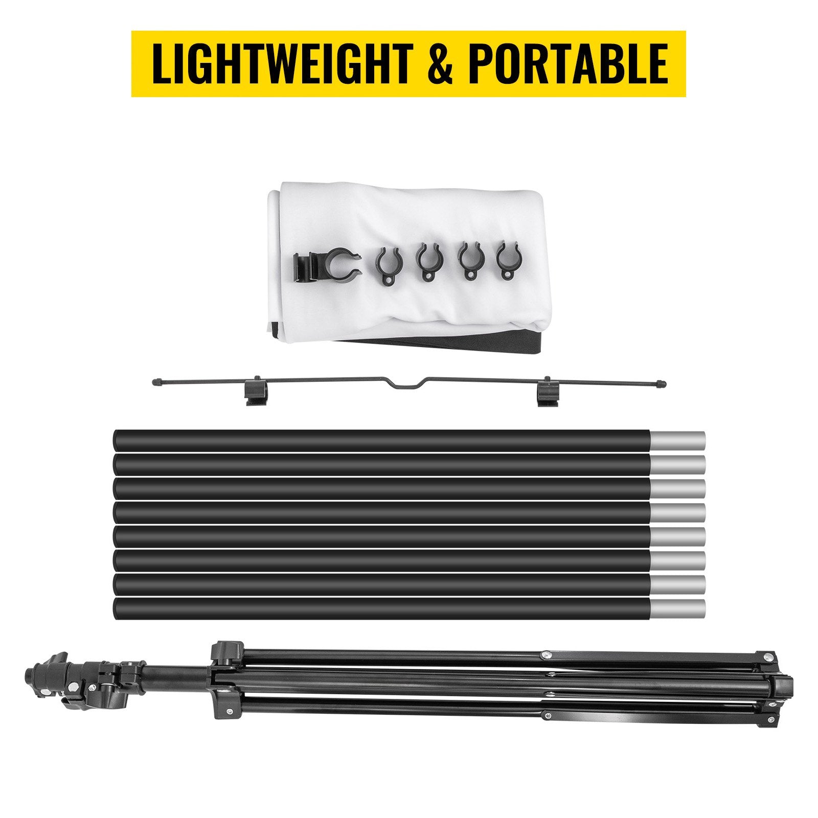 70-inch 16:9 tripod projector screen with adjustable height, wrinkle-free surface, and wide viewing angle for indoor and outdoor use.