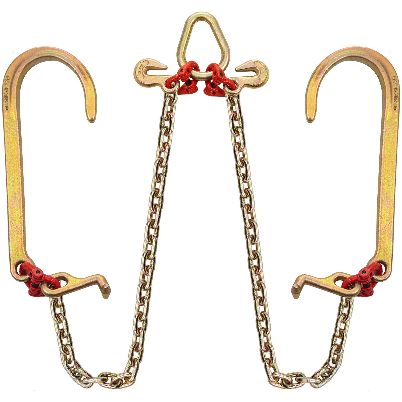 Grade 80 V bridle tow chain, 5/16 in x 2 ft, with 9260 lbs break strength, including TJ hooks, crab hooks, and heavy-duty connectors.