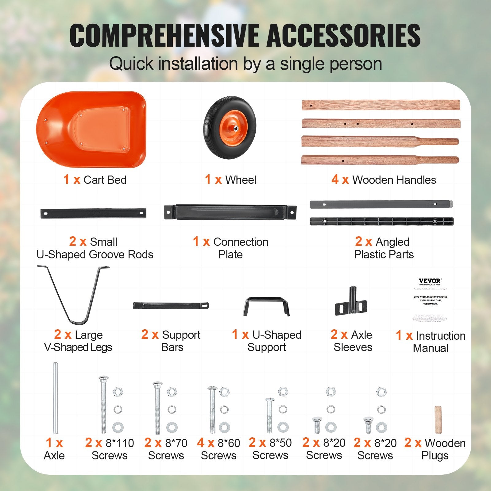 One-wheel garden cart with a 330 lbs capacity, designed for easy transport of soil, tools, and materials in yards and gardens.