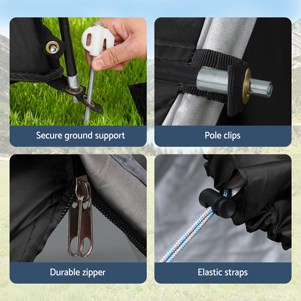 Designed for convenience and versatility, it easily attaches to the rear of your vehicle, expanding your living space and providing quick access to your gear. Crafted from water-resistant Oxford fabric with UV protection, it keeps you sheltered from sun, rain, and wind. The sturdy poles ensure a stable, long-lasting setup, while double-sided zippers on every opening allow effortless entry and enhanced airflow when rolled up. Thoughtfully designed with built-in storage pockets, it keeps your essentials neatly organized. Enjoy extra comfort and freedom on your next road trip or outdoor adventure with the Weisshorn Car Camping Tent.
